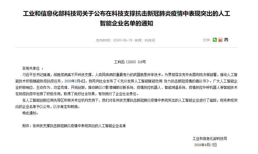 同时,米兰·(milan)AI疫情防控设备、“深目”系统、“天图”系统等3款产品/方案入选了国家人工智能标准化总体组秘书处发布的第一批34款有助于疫情防控的人工智能产品和解决方案名单。